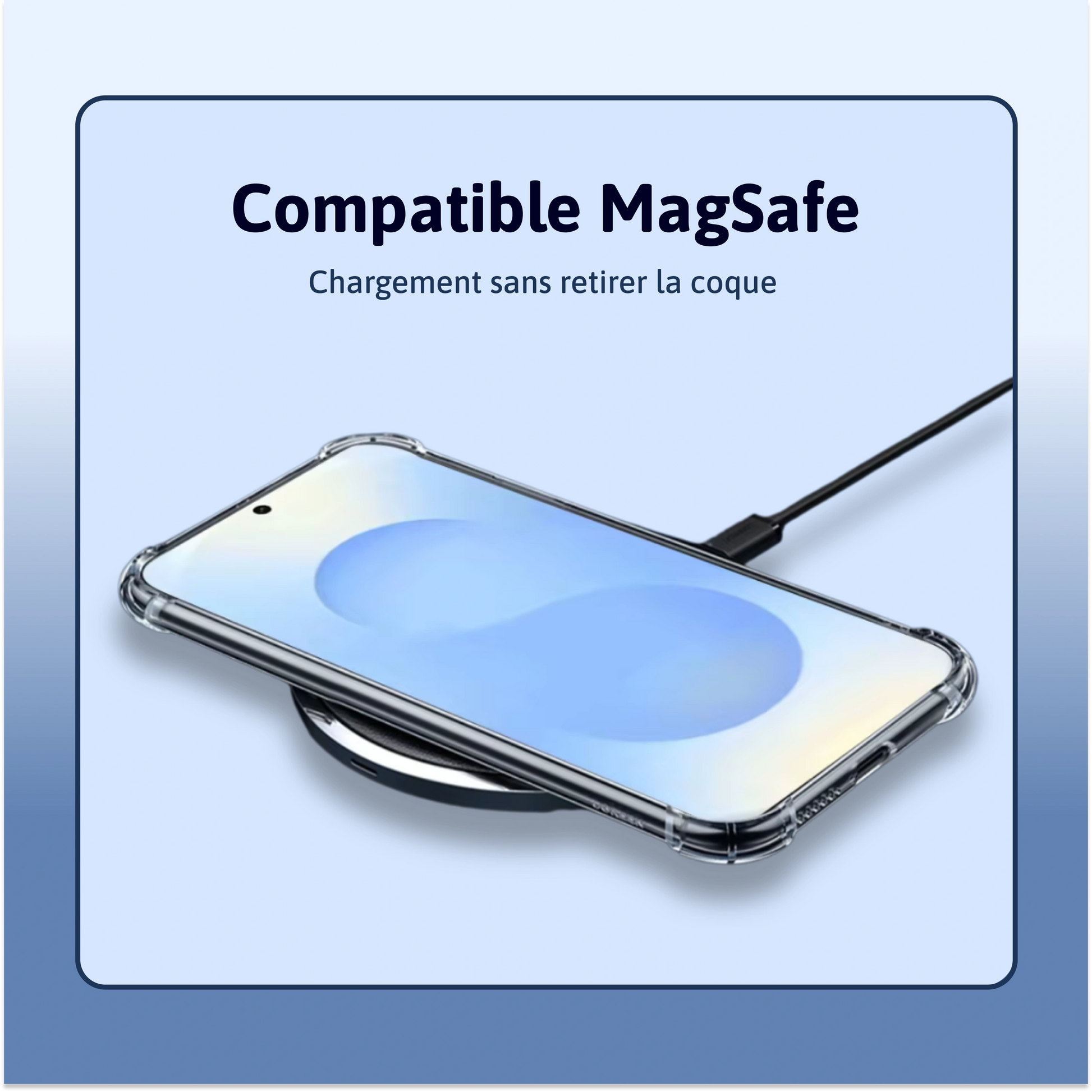 "L'étui est simple mais très robuste. L'aimant est toujours assez fort pour être utilisé avec mon support MagSafe"